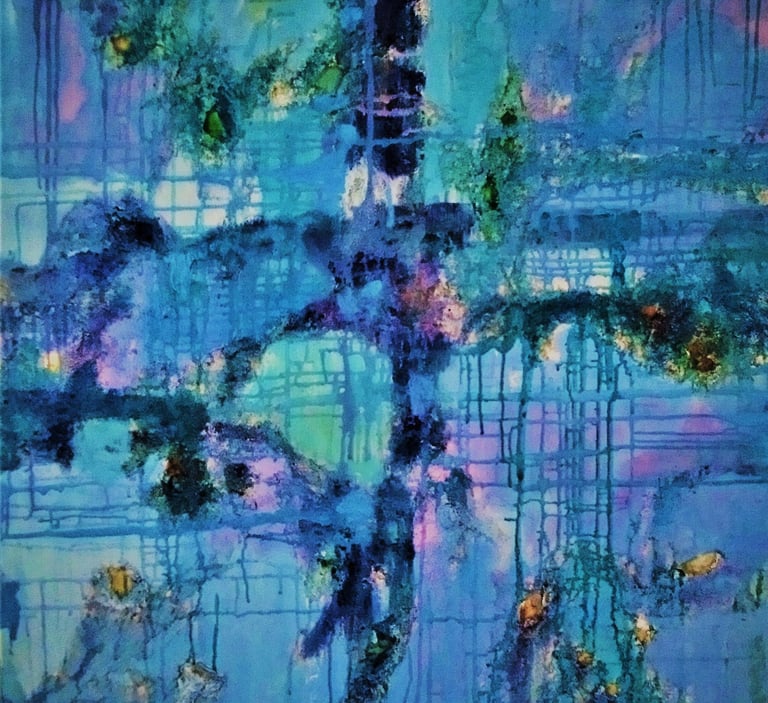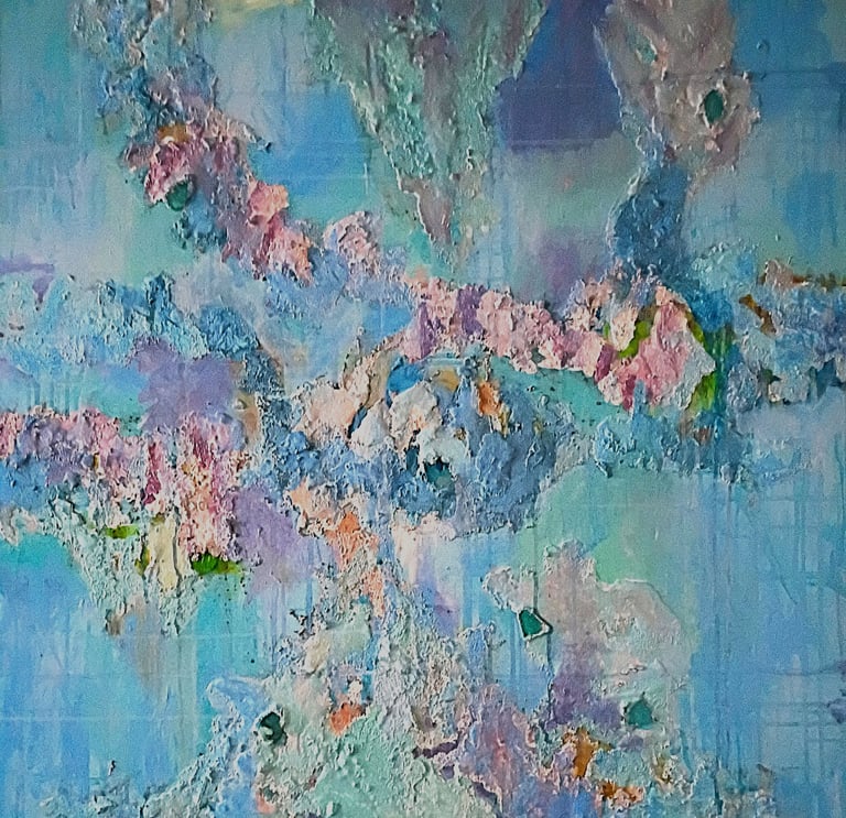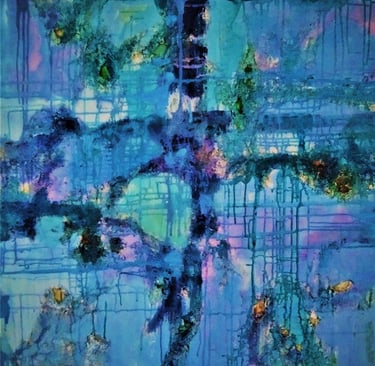 "Splash" Mixed Media on Canvas, 49 x 58"