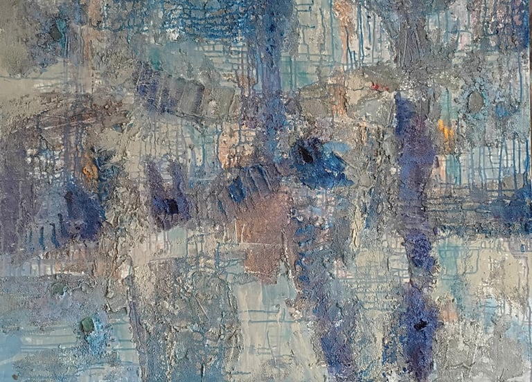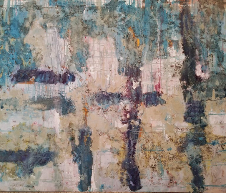 "Beaches I", Mixed Media on Canvas with Beach Sand, 49 x 58".